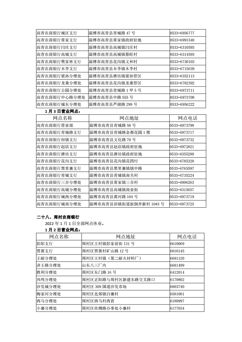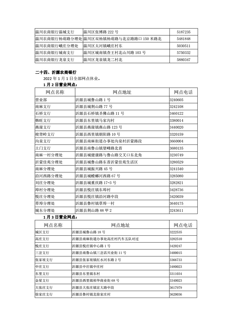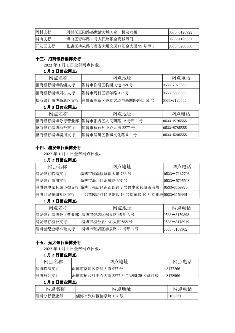 淄博市银行业2022年元旦放假期间网点营业服务指南